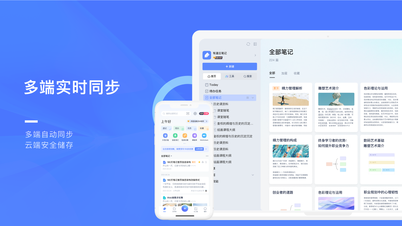 有道云笔记支持微信、微博、链接和网页剪报等多种收藏形式。用户可以将在各种渠道发现的优秀内容一键保存至笔记中,随时查阅,防止丢失。这一功能让用户能够轻松搭建专属于自己的永久知识体系。无论是精彩的文章、有价值的观点还是重要的资料,都能在有道云笔记中得到妥善保存和管理。用户可以对收藏的内容进行分类、标注和整理,方便日后快速检索和使用。同时,有道云笔记还支持跨平台同步,用户可以在不同设备上随时随地访问自己的知识宝库。