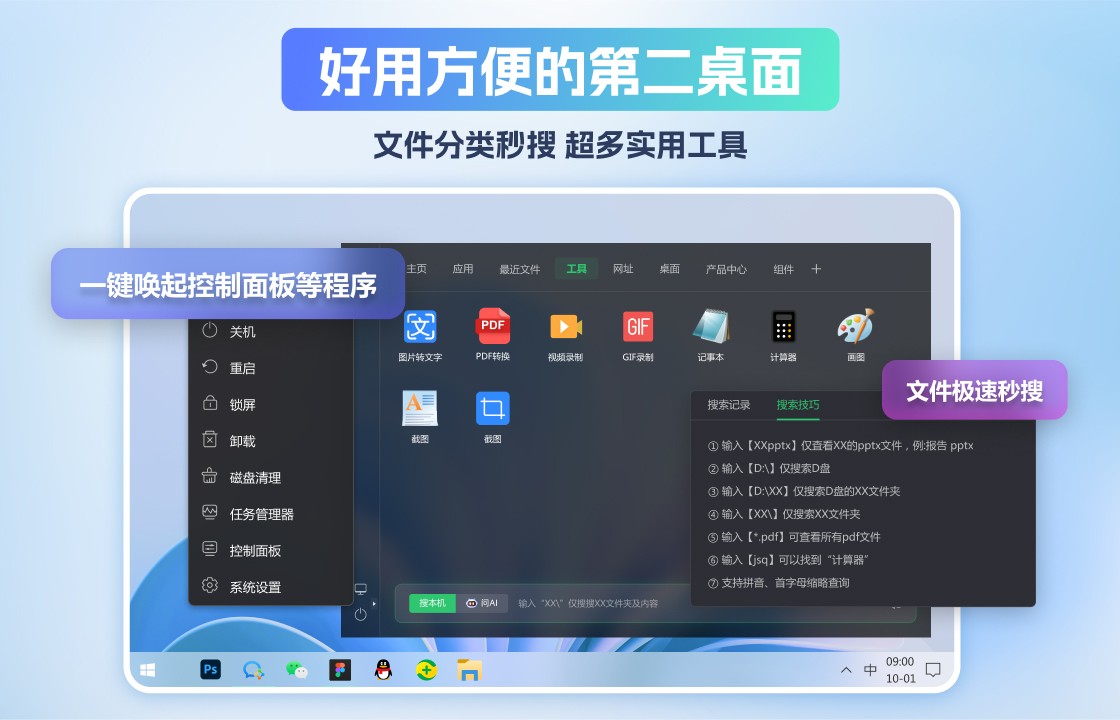 小智桌面这是一款一站式桌面整理与美化的好用的办公软件,小智桌面的最大 特色是通过特定区域的划分以及内容整理等方式,帮助你调理清晰的梳理好的你的电脑桌面,你再也不用整屏幕的找你的文件在哪里了。小智桌面还拥有全电脑检索和待办事项管理功能,各种提醒和注意事项管理以及本地全盘检索,让你效率更高。