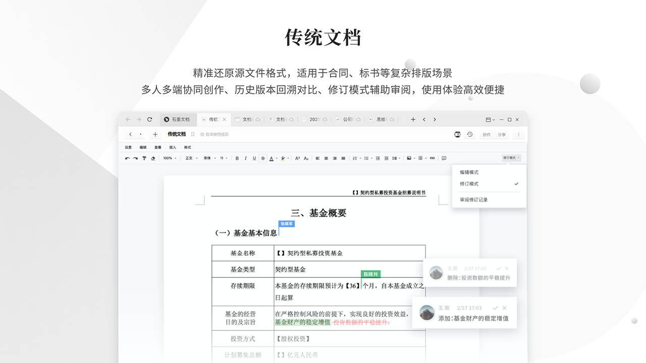 精准划词评论与高效讨论:协作者能够对文档中的字词、句子进行标注评论,这种方式使沟通更加聚焦且更具针对性。团队成员可以围绕具体内容展开深入讨论,无需再依赖反复发邮件等低效的传统沟通模式。例如,团队运营人员可以在一个文档内轻松完成方案讨论和稿件校对等工作,大大节省了时间和精力。