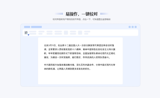 其校对界面与用户惯用的软件界面深度融合,操作极为简便。只需轻轻点击一下,即可快速启动校对功能,瞬间查出全部错误。并且,它直观易用,兼容性极佳,无论是作为常用软件的插件实现即插即用,还是通过集成校对接口为业务系统赋能,都能无缝衔接,完美融入各种文档处理工作流程,为用户带来便捷、流畅的使用体验,真正做到让文档校对轻松无忧。