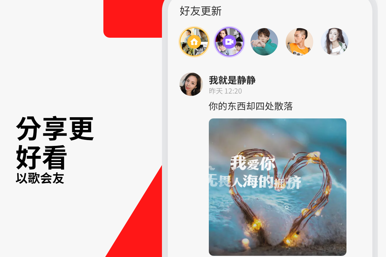 动态传播:演唱作品发布成动态,于多板块展示,吸引关注互动,拓展社交传播链。