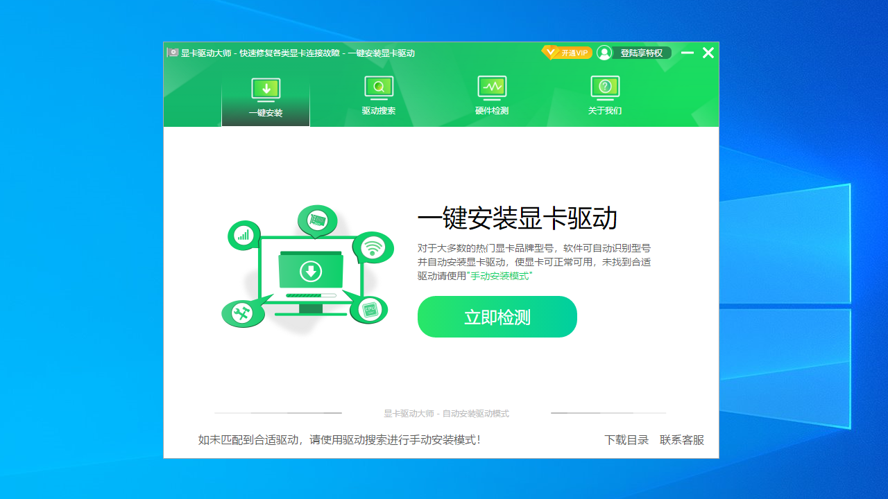 显卡驱动大师这是一款专业为电脑用户而提供的显卡安装驱动的软件,显卡驱动大师可以自动为广大显卡用户提供显卡安装,用户只需要安装显卡驱动大师之后,显卡驱动大师会自动帮助使用者识别电脑上的显卡型号并自动下载最新的显卡驱动,显卡驱动大师同时也可以修复因为显卡驱动损坏而导致的设备无法正常使用的问题。