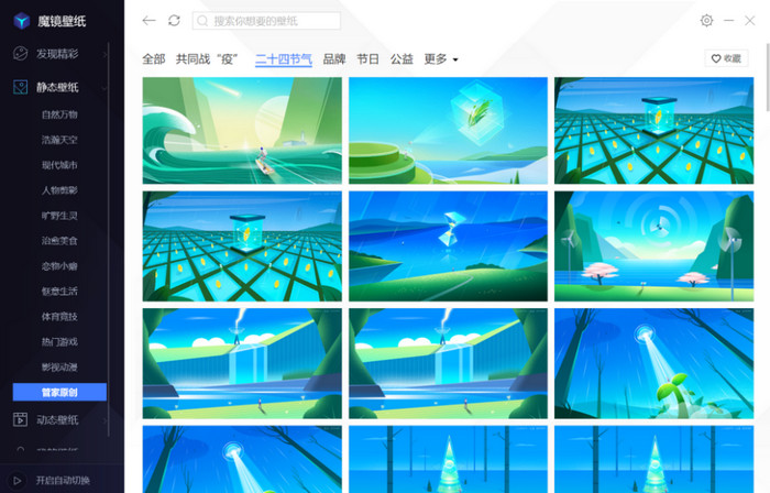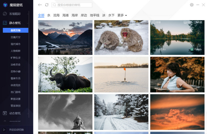 腾讯魔镜壁纸其实来自腾讯旗下腾讯桌面整理软件内置的壁纸软件,说实话腾讯魔镜壁纸功能很强大,壁纸素材也足够多,都是些高清的壁纸素材,但是腾讯魔镜壁纸内容很单调都是些风景画,广大玩家们喜欢的游戏、二次元、动漫、影视、美女等类型的壁纸这里一个都没有,而且腾讯魔镜壁纸都是些静态壁纸,没得动态的。当然如果你喜欢风景画壁纸的话,腾讯魔镜壁纸会是一款很棒的免费壁纸软件。