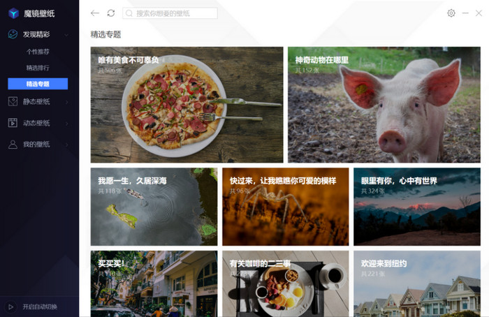 高效搜索与分类查找:软件内置了强大的搜索功能,用户只需在搜索框中输入关键词,如壁纸主题、风格、色彩等相关词汇,即可迅速定位到目标壁纸。同时,在左侧边栏精心设置了丰富的分类导航,包括热门壁纸排行、细致的壁纸分类目录等,用户还可依据文件的修改时间、大小等属性快速索引本地已保存的壁纸文件。这种全方位、多维度的查找方式,极大地提升了用户查找特定壁纸的效率,让用户能够在海量资源中迅速锁定心仪之选。