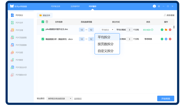 直观的设置选项:在进行文件转换或编辑时,软件提供了直观的设置选项,如转换模式、页面大小、输出路径等,用户可根据自己的需求进行灵活设置。