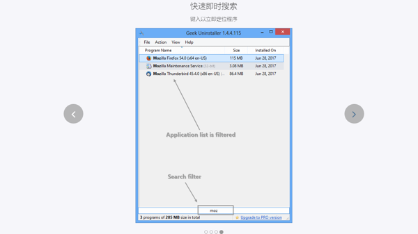 Geek Uninstaller提供简洁直观的用户界面,操作也是非常的简单那,用户只需启动软件,在列表中找到需要卸载的软件程序,右键选择点击卸载按钮即可,也支持通过拖放文件的方式来启动卸载。