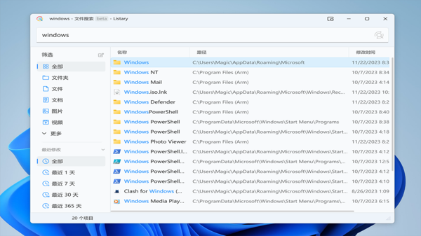 Listary能够根据历史搜索记录进行访问,提供智能化搜索建议,用户可以快速选择自己所需的建议项,能够在不切换窗口的情况直接访问文件。