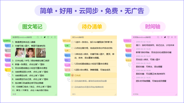好用便签支持多个终端设备云端同步便签内容,只需登录账户即可轻松查询以往的信息,用户可以通过便签文本颜色来区分不同的便签内容事项。