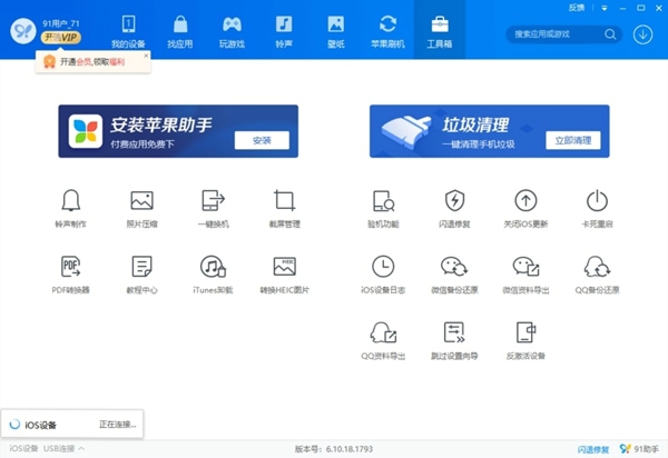 91助手2025最新版是一款功能全面且智能的手机管理助手,软件提供了应用管理、游戏安装、文件传输和备份恢复等功能,91助手电脑版能够帮助用户更方便的管理设备上的应用和数据,轻松处理众多无用的垃圾和文件,节省更多的储存空间。