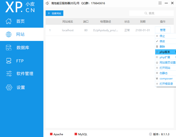 操作简洁直观:拥有可视化的操作面板,各项功能一目了然,无论是启动、停止服务器,还是查看运行状态、管理数据库,都能通过简单的图形化按钮与菜单操作完成,摒弃复杂的命令行输入,降低学习成本与操作难度。