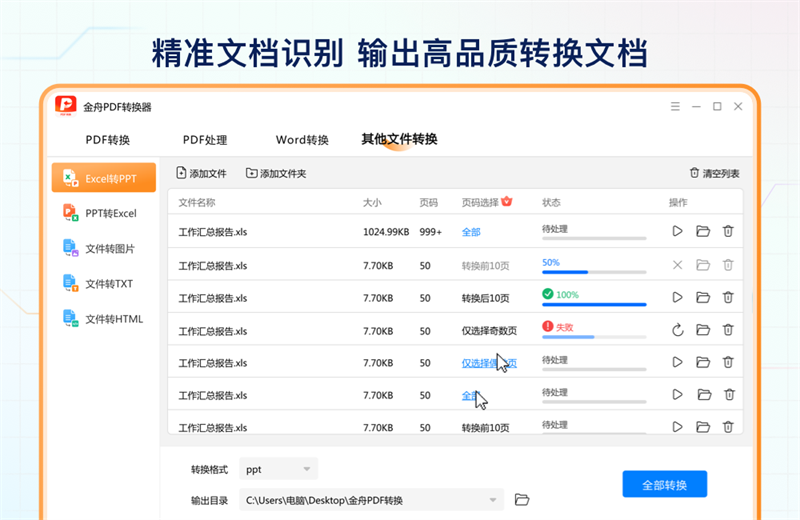 文档转换精准保留图表、公式、排版;图片转换用先进算法,减少画质损失;视频转换确保画面清晰、音画同步,满足专业用户对质量的高要求。