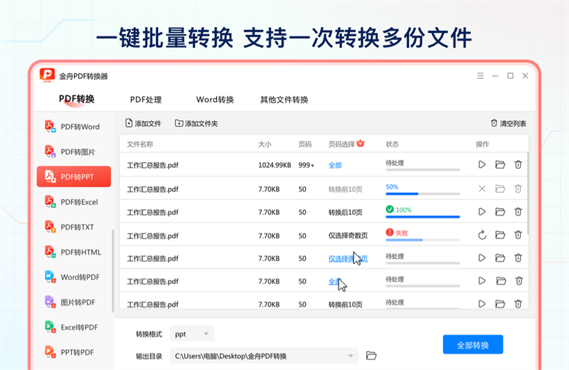 金舟PDF转换器是一款好用的PDF文件工具,金舟PDF转换器电脑版之中用户可以在该软件之中处理各种PDF文件,可以进行合并、分割文件,也可以直接进行PDF文件格式的相互转换,让文件可以转换成用户想要的格式,并且支持市面上常见的格式。