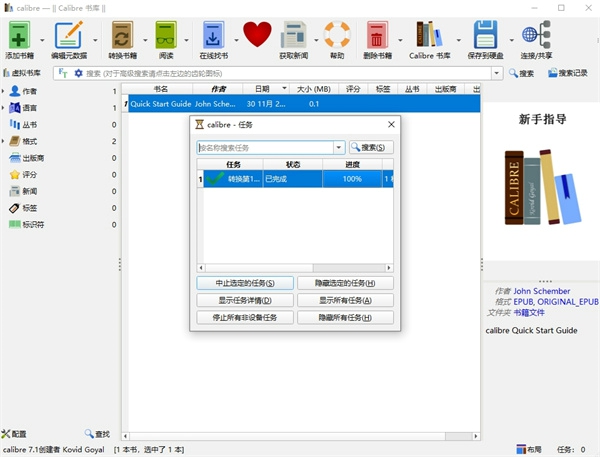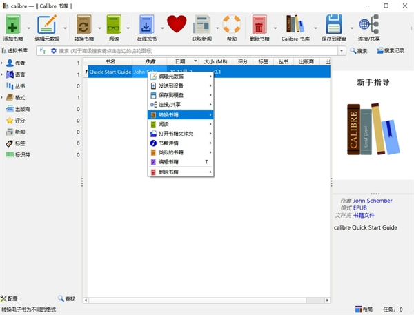 Calibre中文版是一款免费开源的电子书籍管理软件,能够帮助用户轻松管理、转换、查看和编辑电子书,Calibre电脑版支持多种电子书籍格式,可以存储管理自己的书库,能对电子书的书名、作者、封面等元数据进行修改、更新。