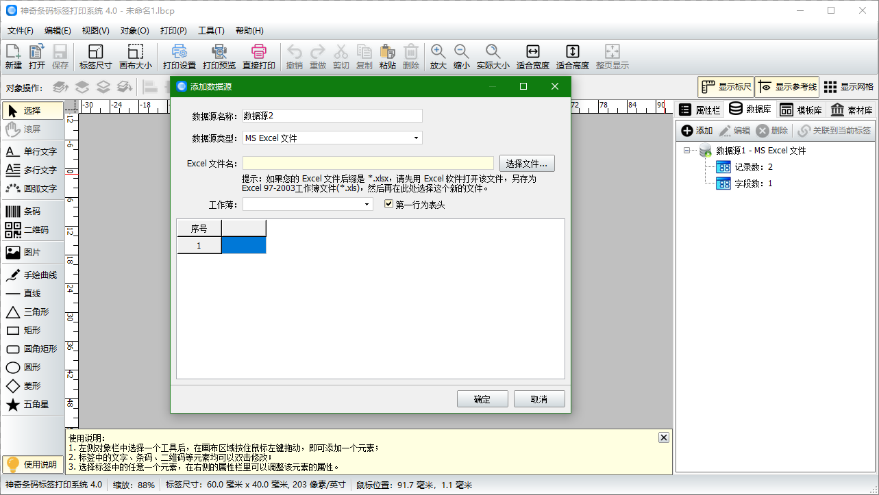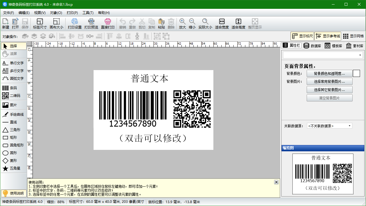 神奇条码标签打印系统可以直接自定义打印内容,也可以选择合适的模板进行修改,该软件支持数据库导入、条形码功能、二维码功能还有许多特殊符号以及行业标志可以直接使用,基本可以满足绝大部分行业的工作需求。