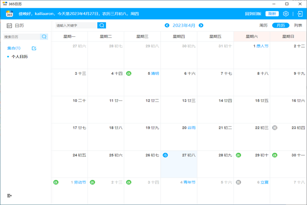 365 日历支持公历、农历、万年历的快速查询。您不仅能即时知晓当天对应的农历信息,了解传统节气,如立春、芒种等,还能清晰掌握法定节假日、纪念日,像国庆节、国际护士节等,全方位把握时间脉络,满足日常日期查询、传统节日庆祝以及历史追溯、未来规划等多样需求。