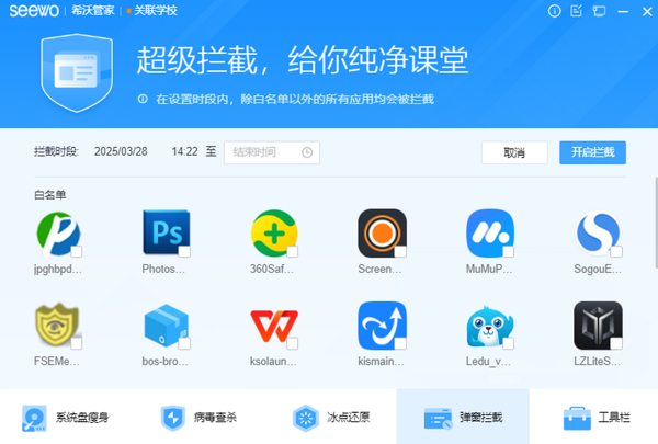 希沃管家电脑版是一款专为教育场景设计的系统安全管理软件,希沃管家2025最新版能够为学校和教育机构提供高效的计算机管理和安全保护,智能拦截各种广告弹窗和干扰信息,保障学生在学习过程中不被打扰,为学生提供一个干净、专注的学习环境。