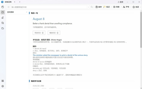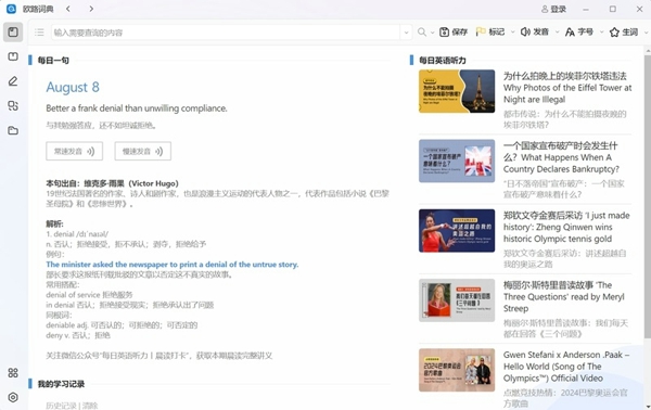 欧路词典2025最新版是一款多功能的英汉词典,这里提供了多语言之间的翻译,涵盖了丰富的词汇库、例句、发音等功能,欧路词典电脑版能够让用户更高效地学习掌握外语,理解更多的词汇,软件内置简洁友好的界面,操作功能非常的直观,易于用户上手使用。