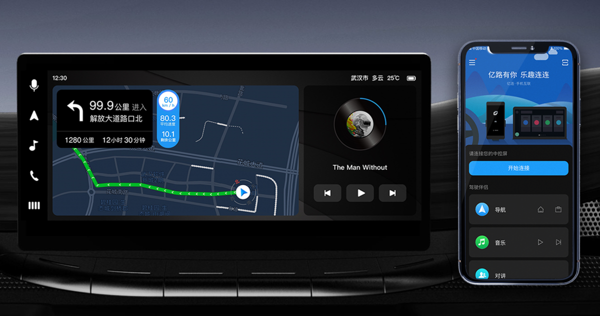 可实现一机双屏,手机同时驱动手机屏和中控屏,自动适应中控屏分辨率,中控屏显示驾驶功能,手机屏可正常操作其他应用,还支持手机锁屏。