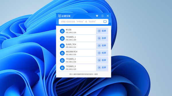 必捷投屏软件支持的投屏设备包括智能电视、电视盒子、投影仪、电脑显示器等,能够满足家庭娱乐、工作展示等多种需求。