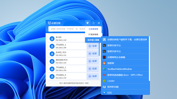 必捷投屏电脑版是一款简洁直观的智能投屏软件,必捷投屏2025最新版支持高质量的画面传输,能够在大屏幕上显示清晰细腻,提供多种投屏方式,支持全屏、窗口、指定区域等多种投屏模式,用户可以根据自己的需求选择最合适的方式进行投射。