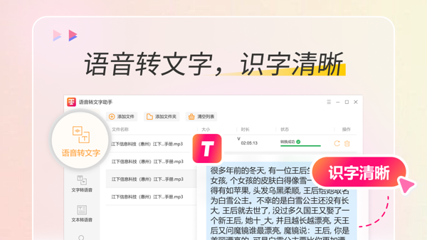 金舟文字转语音软件是一款功能强大的文字转语音工具,软件能够在多种场景中适用,可以将文字内容快速转换为自然流畅的语音,金舟文字转语音软件电脑版能够生成自然、流畅且富有情感的语音,支持多种不同风格的语音类型和音色选择。