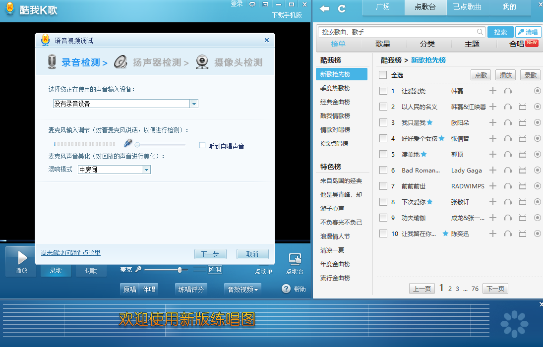 酷我K歌是酷我旗下一款可以帮助用户练习歌曲哼唱的软件,酷我K歌电脑版之中可以为用户演奏各种歌曲的伴奏,并且支持摄像头的录制,用户可以轻松将自己歌唱时候的视频录制下来,还有专业的音效处理,可以让用户k歌的时候更加轻松且听感更好。