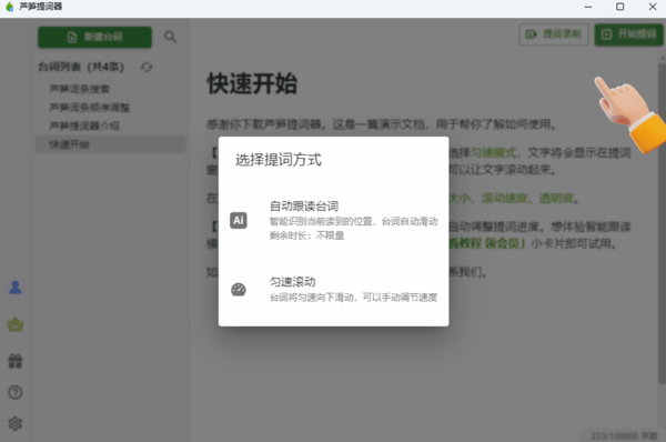 智能跟读,精准合拍:芦笋提词器运用领先的语音识别技术,能够实时感知用户语速,自动调节文本滚动速率。