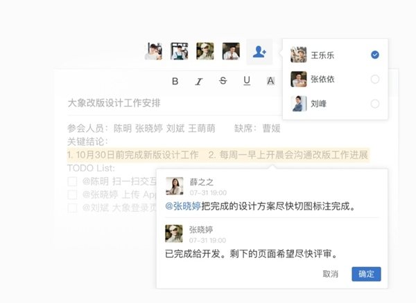 多人实时协同编辑文档,可添加批注、@用户或 @文档精准沟通,无需频繁上传下载,项目进展同步无歧义。