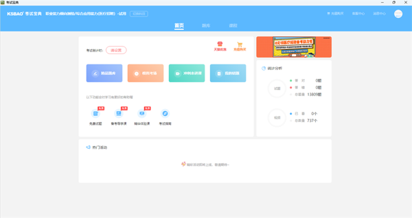 统计分析功能:以列表、走势图等形式显示得分、正确率等,按考试科目分类展示,让用户清晰了解自己的学习状况,针对薄弱环节加强训练。