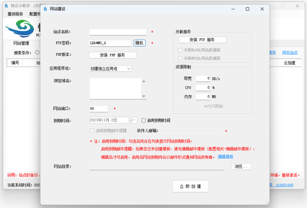 快云小助手电脑版是一款功能丰富且操作简便的管理工具,快云小助手2025客户端能够一键创建IIS站点,快速部署和管理多个站点,用户可以通过简单的操作,即可实现站点的创建、配置和启动,无需繁琐的配置,简化了整个站点和服务器管理过程,让用户能够专注于开发和内容管理。