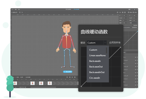 曲线缓动函数:内置多种常用缓动函数,还支持自定义缓动函数,可轻松改变角色动画中骨骼旋转和移动等运动的变化快慢。