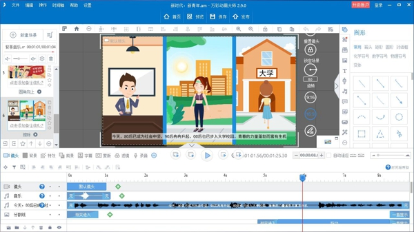 镜头特效多样:支持缩放、旋转、移动等多镜头特效,使动画视频更富有镜头感,镜头切换流畅,提升视觉冲击力。