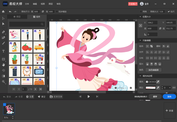万彩易绘大师软件提供丰富的创意模板和资源,用户可以根据自己的需求轻松定制和创作,支持一键批量操作,简化繁琐的设计步骤。