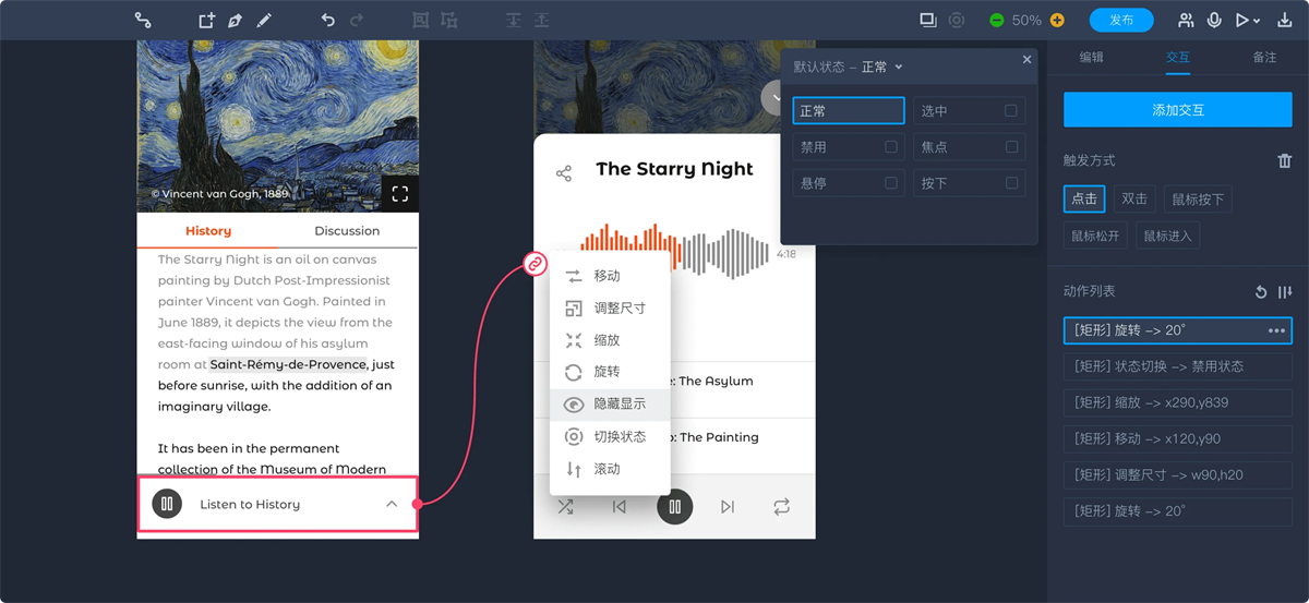 系统提供多种触发方式与交互动作,用户可以轻松实现自然且逼真的交互效果,提升用户体验。