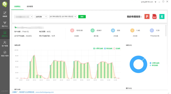 报告功能实用:支持云端下载账户优化分析报告,报告类型涵盖 PPT 版、PDF 版等多种形式,能够提供账户余额、每日预算、消耗走势等丰富数据,让用户对账户推广情况一目了然,以指导后续投放策略优化。