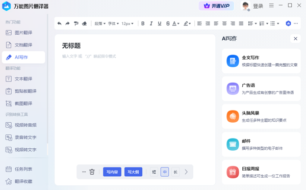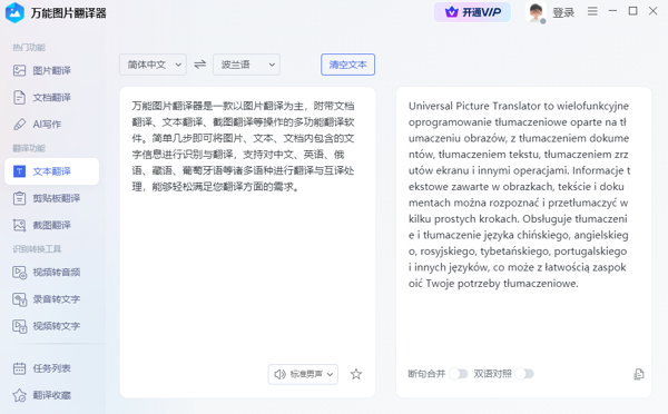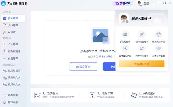 万能图片翻译器软件支持图片文字识别、视频转音频、录音转文字、视频转文字等多种识别转换功能,满足用户不同场景下的需求。
