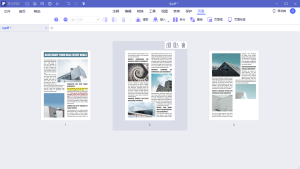 页面操作便捷:软件支持 PDF 文档以缩略图模式浏览,快速定位目标页面。还能对页面进行旋转、提取、删除、复制、添加空白页等操作,长按拖动页面即可调整顺序。