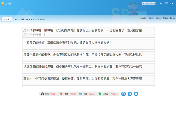 实时反馈打字情况:可实时显示用户的打字速度和准确率,让用户清楚了解自己的进步情况,以便及时调整练习方法。当用户输入错误时,软件会及时提示并纠正,有助于提高打字准确率。