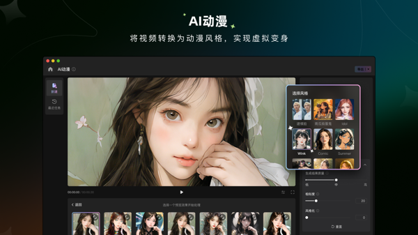 Wink 的 AI 动漫功能极具创意,能将真人视频一键转换为动漫风格。无论是热血冒险风、唯美浪漫风,还是搞怪搞笑风的动漫效果,都能轻松达成。