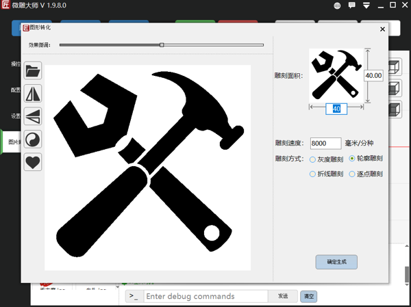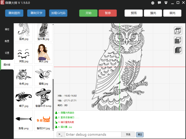 操作简便直观:无需生成雕刻代码,就能直接雕刻图片、文字和矢量图,通过简单的拖拽和点击操作,即可将设计素材放置在雕刻区域并精准定位调整,新手也能快速上手。