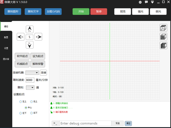 定位精准灵活:支持弱光定位,打开弱光可调节激光焦距,确定激光起点,且支持 PWM 调节功率。还能任意设置起点,可根据材质形状灵活设定,方便用户针对不同形状的材料进行雕刻。