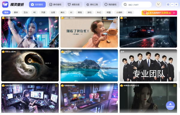 汇集超清动态壁纸、静态壁纸、互动壁纸三大核心品类,涵盖风景、动漫、游戏、科技、简约等多元风格;资源实时更新,满足不同审美与场景需求,无需额外搜索。