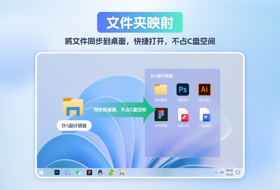 通过拖拽即可将桌面文件同步至主面板,集中存放重要内容,固定位置便于随时访问。