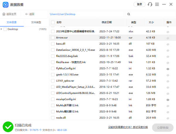 数据救星软件提供了多种扫描模式,快速扫描能够快速找到最近丢失或删除的文件,而深度扫描则能通过详细的扫描技术,可以在硬盘深层次挖掘被删除或丢失的文件。