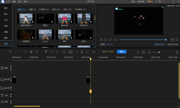 软件内置了大量的视频特效,包括转场效果、动态文字、滤镜、画面分割等,用户可以快速应用各种特效,为视频增色添彩。