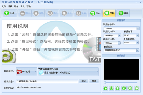 枫叶VOB视频格式转换器软件可以根据需求自定义视频输出的分辨率、码率、帧率等参数,获得最佳的视频质量和文件大小。
