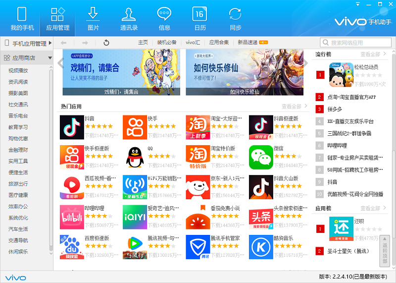 vivo 手机助手功能丰富,可帮用户有序管理手机资料,如整理照片、备份重要数据。还能助力用户轻松制作个性主题,通过丰富素材自由搭配。其应用商店海量且更新及时,便于用户在电脑端便捷下载手机应用。