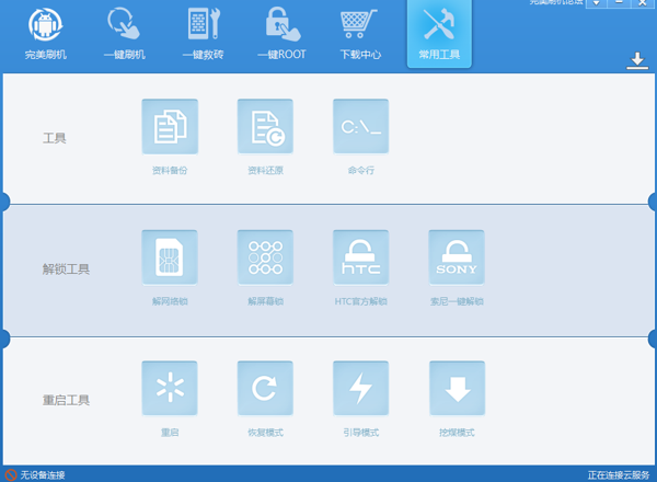 支持变砖修复:具备一键救砖功能,是全球首创免开安卓 2.3 的变砖修复功能,安卓 4.0 以上系统通刷。即使手机刷机后变成砖机,也能通过该软件恢复官方系统,让刷机更有保障。