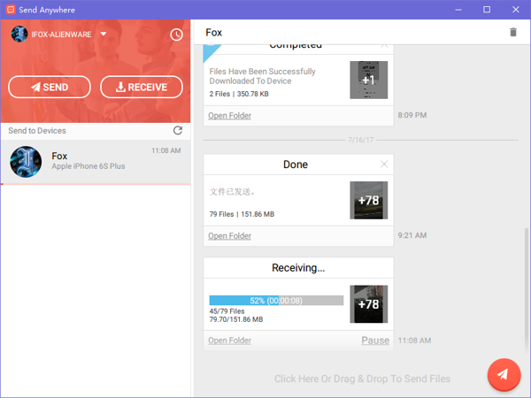 Send Anywhere软件支持通过局域网进行文件传输,在不依赖互联网的情况下,也可以快速传输文件。