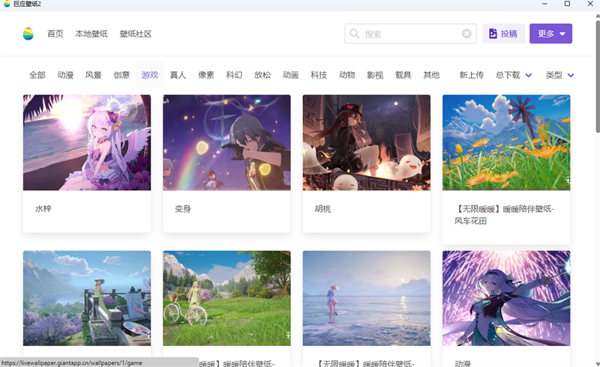 巨应壁纸电脑版是一款简单好用的桌面个性壁纸软件,巨应壁纸2025最新版提供各种高清、超清晰的壁纸,内置了丰富多样的壁纸风格类型,用户可以按不同类别进行分类,方便用户快速查找喜欢的壁纸类型,轻松制作专属的个性化桌面。